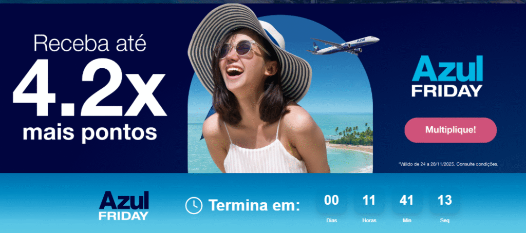 A Azul permite adquirir até 1.000.000 de pontos, além do bônus gerado pela campanha. Durante o período promocional, o programa elevou o limite anual total para 3 milhões de pontos por cliente, ampliando o espaço para quem pretende reforçar o saldo de forma estratégica.