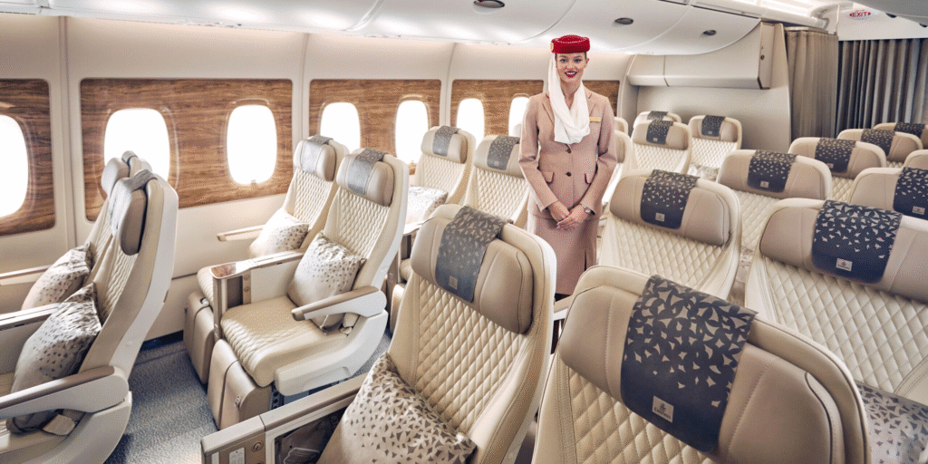 A configuração preserva o padrão premium característico da Emirates, agora com um nível adicional de refinamento.