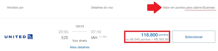 • Buenos Aires (EZE) – Houston (IAH): 118.800 pontos + taxas, United Airlines