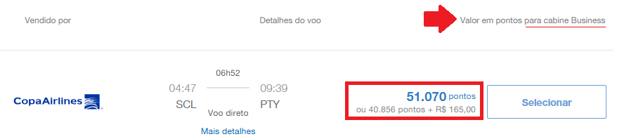 • Santiago (SCL) – Cidade do Panamá (PTY): 51.070 pontos + taxas, Copa Airlines