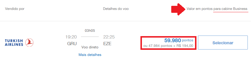 • São Paulo (GRU) – Buenos Aires (EZE): 59.980 pontos + taxas, Turkish Airlines
