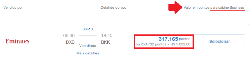 • Dubai (DXB) – Bangkok (BKK): 317.165 pontos + taxas, Emirates