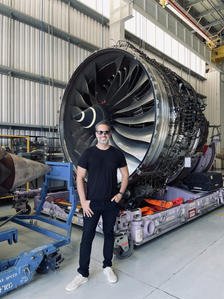 Talvez um dos momentos mais impactantes de toda a visita tenha sido acompanhar de perto o processo de pintura das blades (pás) dos motores de um Airbus A320neo. É nesse tipo de detalhe que a aviação revela seu nível mais extremo de precisão — e também seus custos impressionantes. Cada uma das 18 pás de um único motor pode chegar a cerca de USD 150 mil (aproximadamente R$ 600 mil), o que eleva o valor de um conjunto completo para algo próximo de R$ 11 milhões. Um número que, por si só, já impõe respeito.